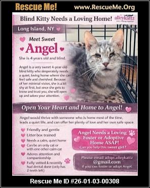 Read more »26-01-03-00308C01Angel (f)(female)Domestic CatNYID: 26-01-03-00308