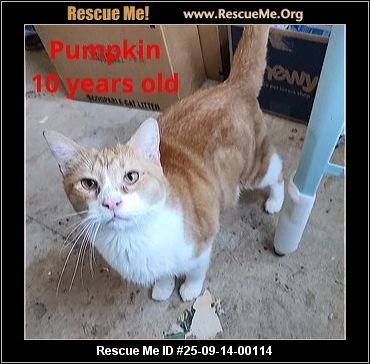 Pumpkin is a stunning 10 year old orange and white tabby male that weighs 13 lbs. Pumpkin came to the rescue from a
