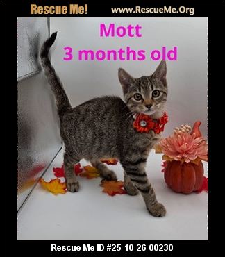 Meet Mott! Mott is a darling 14-week-old tabby baby with a big personality packed into a tiny body! She's playful,