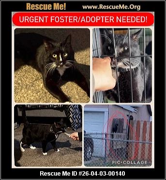 Read more »26-04-06-00230C01Appa! Urgent April 9 (m)(male)Domestic CatRiverside County, Moreno Valley, CAID: A547900