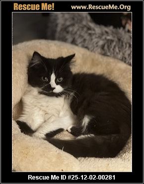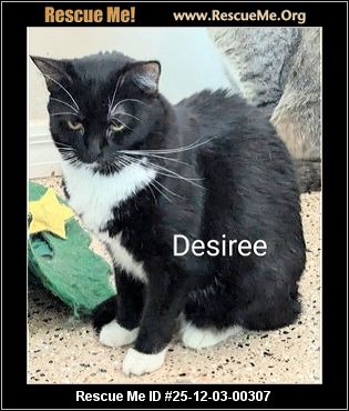 Desiree is a beautiful medium hair length Tuxedo cat. She is about 2 years old and very shy. She has been at the