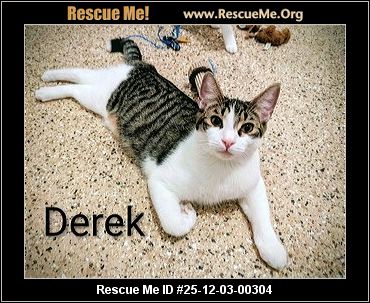 Derek an 8 month old male is a bundle of energy who should have other kittens or a young cat to play with. He is