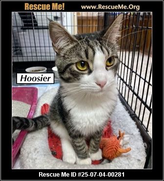HOOSIER IS AN OUTGOING AND FRIENDLY OLDER KITTEN. HE LOVES PEOPLE AND GETS ALONG WITH DOGS! APPLY AT