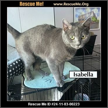 Read more »24-11-03-00223C01ISABELLA (f)(female)Domestic CatKane County, Gilberts, ILID: 24-11-03-00223