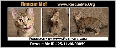 Read more »25-11-16-00059C01Rosemary (f)(female)Domestic CatCook County, Chicago, ILID: 25-11-16-00059