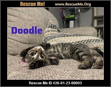 Meet Doodle Male, est DOB 11/25/25 Up to date on shots, not neutered, FIV/FeLV neg This boy is very adventurous and