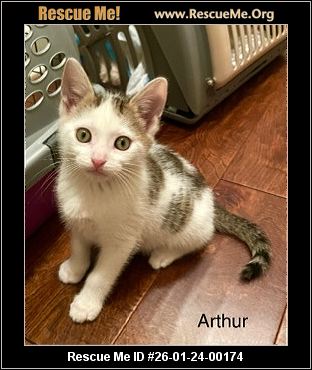Meet Arthur! Est DOB 11/27/25 Up to date with shots, not neutered (too little and young). DSH male white with tabby