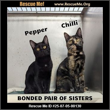 BONDED PAIR OF SISTERS. Chilli and Pepper need a quiet understanding home that will let them adjust slowly to their