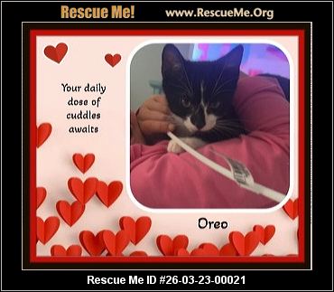 Read more »26-03-23-00021C01Oreo - Has until 3/29 (f)(female)Domestic CatAlamance County, Charlotte & Concord & WinstonSalem area , NCID: Dog Buddy - Squirt